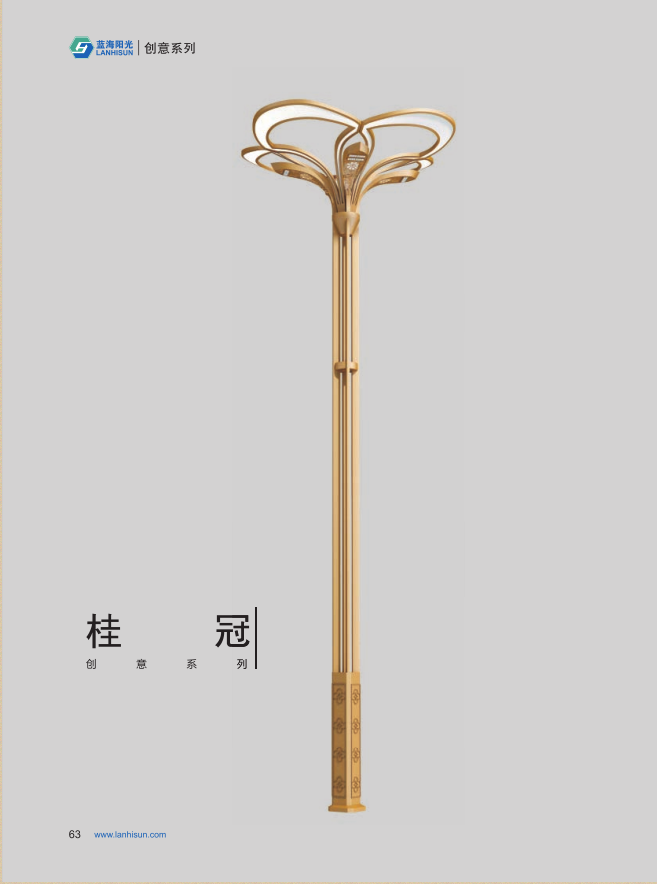 1、高度為6-16米; 2、花葉光源為4組LED光源,色溫2500-6500K,其余光源為LED裝飾光源,每個光源功率為30-60W; 3、LED驅動電源壽命可達五年; 4、整體熱鍍鋅噴塑,保證燈桿15年不生銹; 5、可以根據使用地區的地域文化、產業特點等進行文化定制;