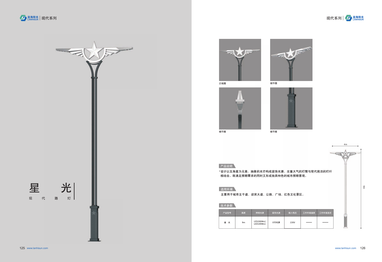 1、高度為6-16米; 2、光源為2組LED光源,色溫2500-6500K,每個光源功率為60-300W; 3、LED驅(qū)動電源壽命可達五年; 4、整體熱鍍鋅噴塑,保證燈桿15年不生銹; 5、可以根據(jù)使用地區(qū)的地域文化、產(chǎn)業(yè)特點等進行文化定制;
